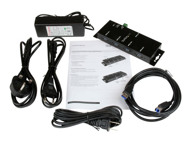Metal Industrial USB-A Hub - Wall or Desk Mountable USB Data Hub - TAA Compliant USB Expander Hub (ST4300USBM) - Hub - 4 x SuperSpeed USB 3.0 - stasjonær - DC-strøm - for P/N: ITB20D3250, MSDREADU2OTG, SVA12M5NA, USB312SAT3CB, USB315CB2M, USBLTM1MBK, USBLTM1MWH